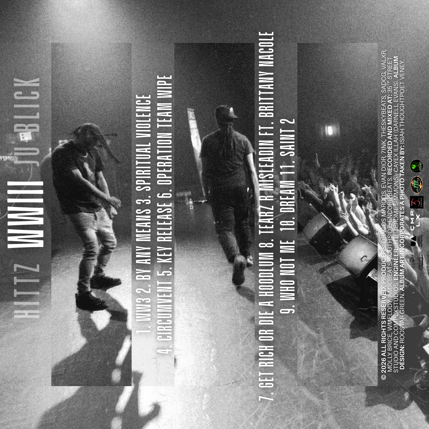The artists Hittz & Ju-Blick both carry a confident, almost defiant cadence that makes even straight forward bars feel forceful. There’s a grit in the performance that gives the music authenticity, nothing feels overly polished or detached. Instead, the voice sits in the mix like someone speaking from the middle of the environment they’re describing. What separates “World War 3” from many modern rap releases is its focus on atmosphere rather than spectacle. The album doesn’t rely on flashy production tricks or pop leaning hooks. Instead, it builds tension through mood, dark beats, steady flows, and lyrics that emphasize pressure over celebration. The result is a project that feels raw and immediate..
